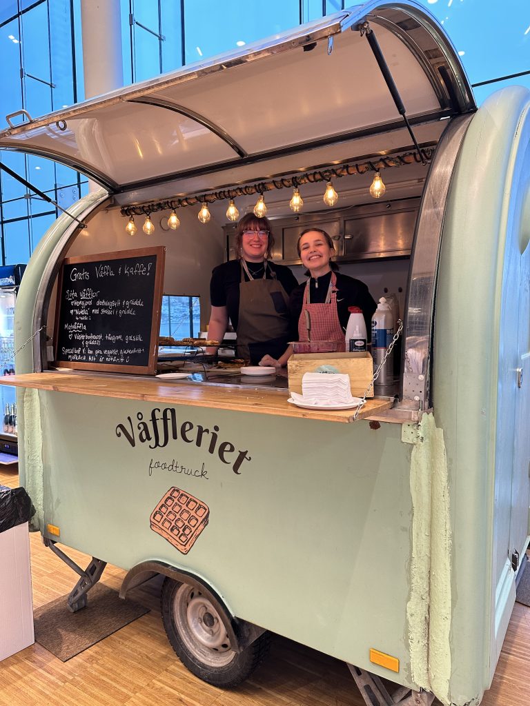 Smilla och Estrid erbjöd nygräddade våfflor med olika toppingar.